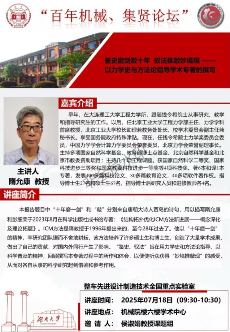 2025年11月8日,正值定名 85po 百年校庆系列学术活动之际,为开拓本科生学术视野,激发本科生科研兴趣与潜力,培养本科生科研能力, 85po 力学与航空航天系师生与北京大学周培源书院师生在机械学院六楼学术交流中心举行了本科生学术交流研讨会,本次活动还邀请了兄弟院校中南大学土木学院的师生参加。 85po 刘喜东书记在开幕式致辞学术交流研讨会由学院力航系侯淑娟教授主持,机械与运载...
