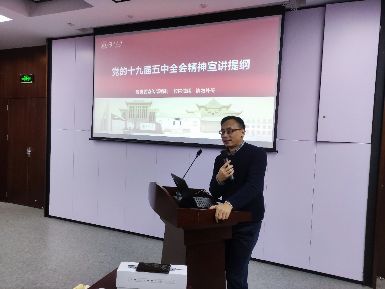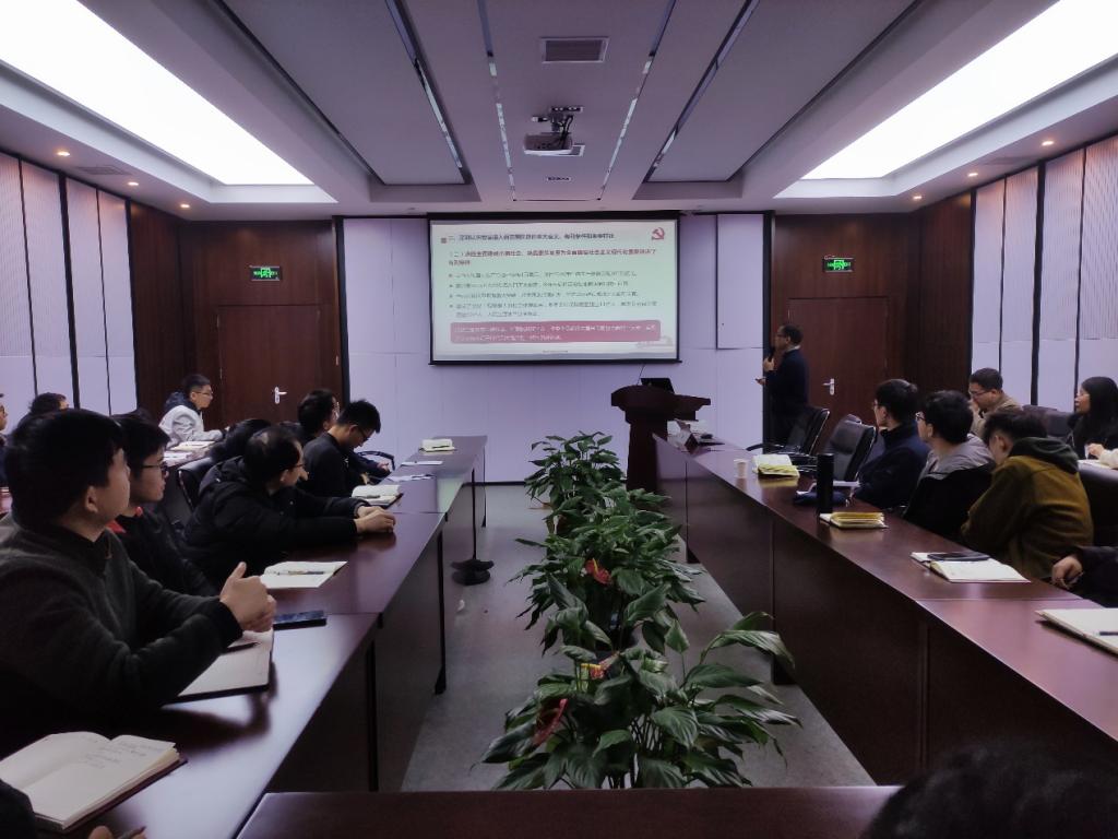 执行院长姜潮教授在机械院楼316会议室主讲专题党课,宣讲中国共产党第十九届五中全会会议精神,机械可靠性党支部、设计第一党支部等全体党员同志参加学习。