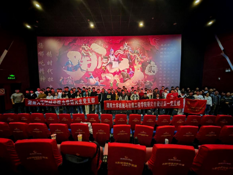 研究生设一党支部、研究生力学党支部、研究生车一党支部、研究生装备党支部和研究生联四党支部五个党支部以“扬哪吒精神 铸时代担当”为主题,携手开展了一场别开生面的观影活动。此次党日活动给支部同志带来了视觉上的震撼,丰富了大家的精神生活,影片中的人物形象充满奇幻色彩,他们的意志品格激发了大家的昂扬斗志,以及对初心、使命、担当的深刻思考。