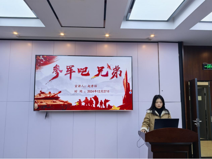 举办征兵宣讲会,学院辅导员赵君怡主持活动。