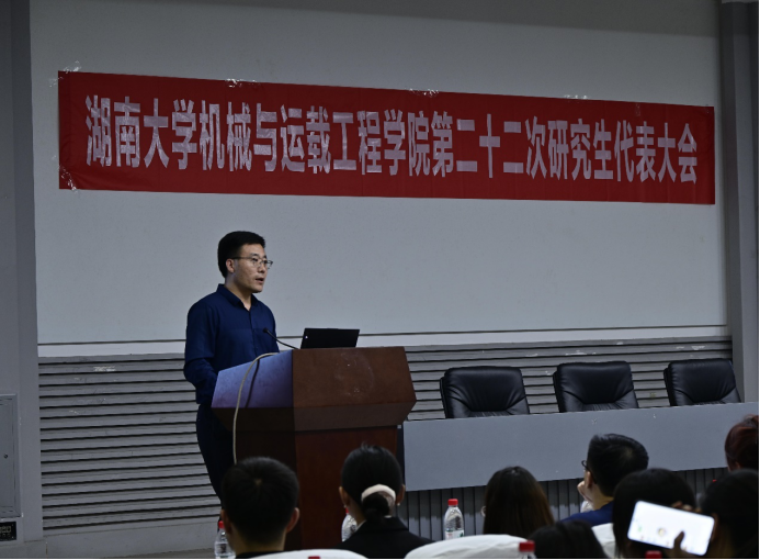 研究生人数最多的学院,希望同学们聚焦时代发展,在新时代中找准自己的定位,勇立时代潮头。对此,他对同学们提出了四条建议:第一,树立远大志向、坚定理想信念;第二,提升道德修养、锤炼高尚品格;第三,珍惜学习时光、练就过硬本领;第四,秉持艰苦奋斗、勇担时代大任。来自土木工程学院的朱盈同学作为兄弟学院研究生代表上台发言,她表示要进一步加强兄弟学院间的交流合作,在未来的日子里要携手并肩,共同面对挑战,共同创造辉煌。会议还听取并审议《 85po