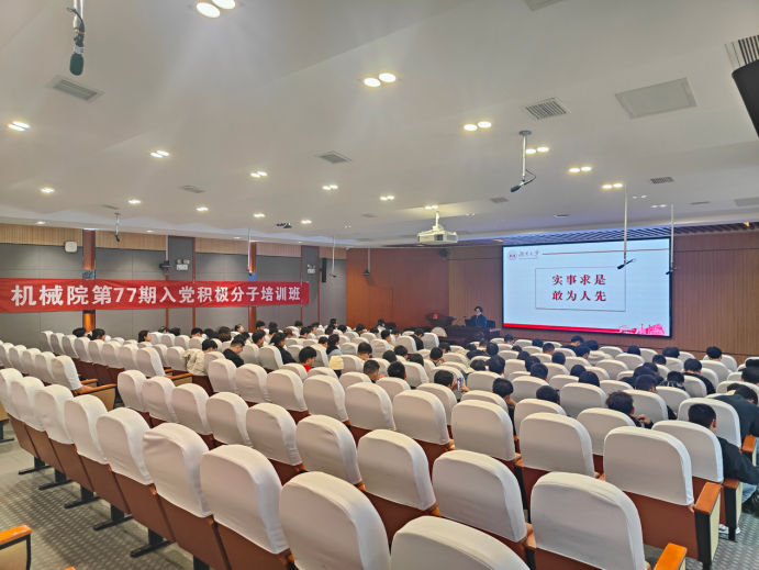 为深入学习贯彻习近平新时代中国特色社会主义思想,落实新时代党员教育和发展工作,提高发展党员质量,加强入党积极分子队伍建设,10月26日至10月27日,机械院第77期入党积极分子培训班线下授课在院楼401举办,学院经团组织推优的102名入党积极分子参加培训。