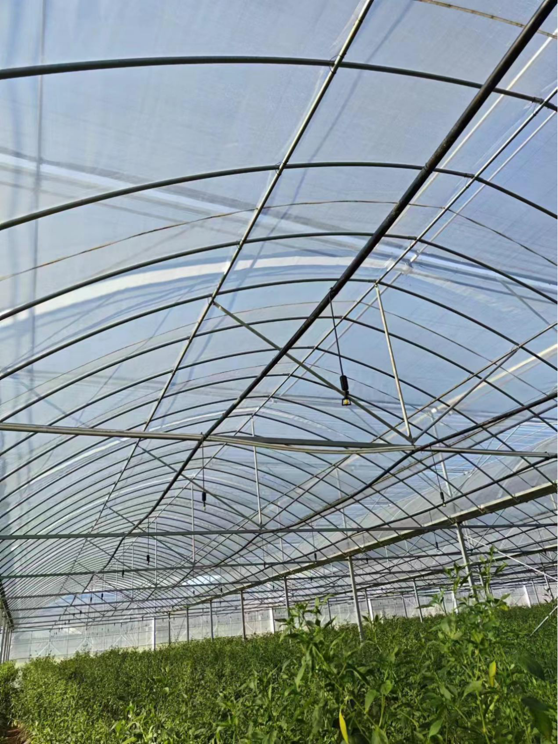 随后,我们跟随村民参与了辣椒苗的灌溉。黄辣椒的种植基地分为两块:室外及大棚。室外采用人工将水管拖至辣椒田的方式进行手动灌溉,劳动量较大的同时无法做到精准灌溉,存在灌溉不均、水资源浪费等问题;而大棚内配置了专门的喷水设备,推测是想要解决前述灌溉方式存在的弊端,但我们了解到其配套的水塔及控制浇灌的设施尚未建设完成,目前仍采用人工浇灌的方式。