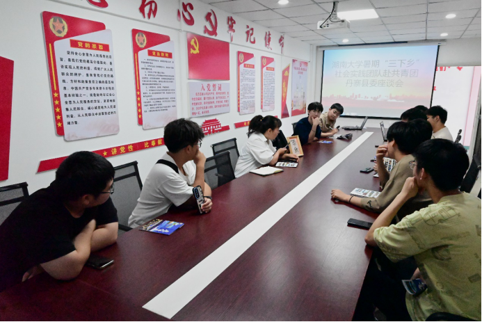 图 2全体团队成员与共青团丹寨县委副书记龙胡萍展开座谈会(林恩弘 拍摄)