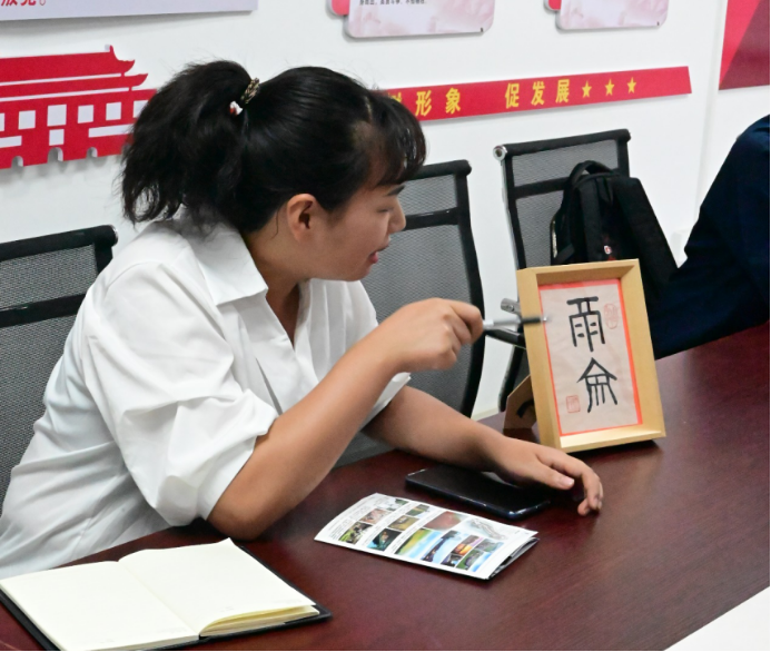 图3龙副书记向本团队展示水书文字——满仓(夏子烨 拍摄)