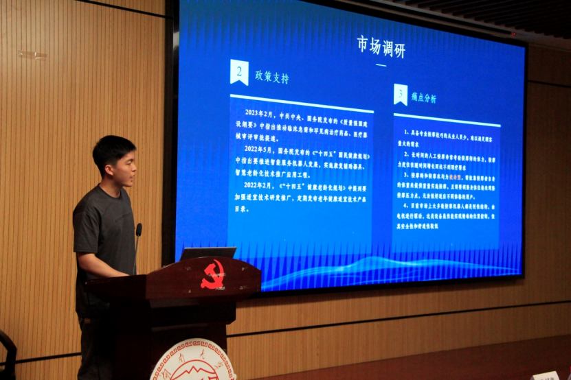 党委书记彭晓燕、党委副书记刘明然、第十八届“挑战杯”全国大学生课外学术科技作品竞赛国赛一等奖指导老师陈根余、机创大赛国赛评委、机械设计系刘江南、中国国际大学生创新大赛(2023)国赛金奖项目指导老师张冠华担任评委。此次赛事特邀校团委副书记胡品老师莅临指导,院团委书记叶胜老师主持。