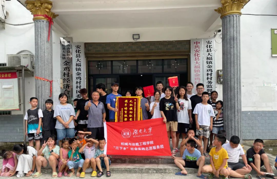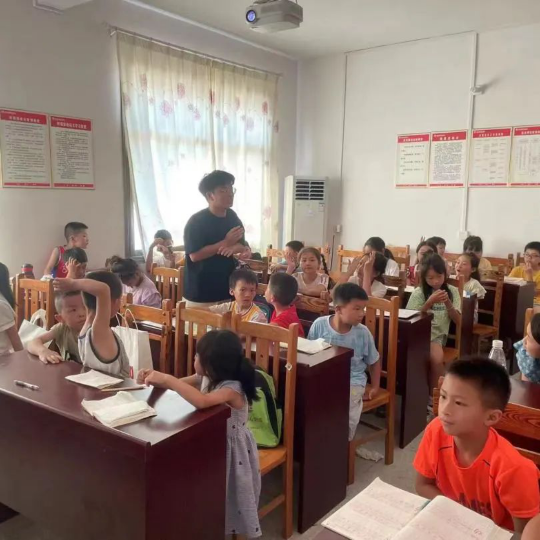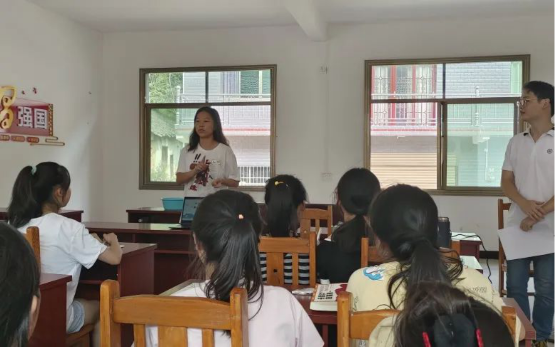 机载寻梦志愿团于7月9日到达安化县大福镇金鸡村,开展了为期十天,以教育关怀为主题的暑期实践活动。在村委楼临时的教室里,孩子们在哥哥姐姐们的耐心引导下,积极发言、主动表达,在轻松、活跃的课堂氛围中掌握了防溺水、未成年人保护、用火用电安全等实用知识。实践队成员还精心准备了阅读分享、历史故事等课程引导金鸡村的孩子们树立正确的价值观,并通过介绍不同地区的民俗文化,在孩子们心中种下向往更加广阔世界的种子。