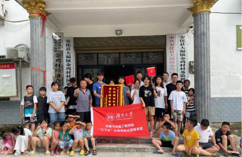 “机载寻梦实践队”来到湖南省益阳市大福镇金鸡村开展了为期十天的三下乡社会实践及调研活动。活动以“七彩假期”为主题,同时进行了乡村调研实践学习,全方面深入探索学习乡村振兴之路。