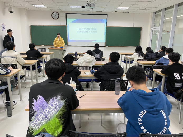 班会开始,学习委员张家乐同学向大家介绍本次班会的主要内容一共分为四个环节:挂科率分析,班级核心课成绩分析,优秀同学表彰,学习经验分享。