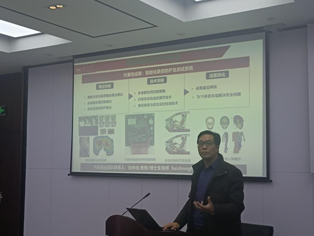 汽车车身国家重点实验室徐世伟主任、学院贺迅副书记、车辆工程系白中浩主任、张冠军副主任等15位老师、1904班全体同学参加会议。