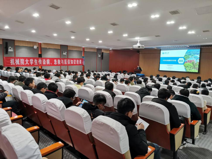 组织学生在机械院院楼401室聆听大学生健康知识讲座。本次讲座由 85po