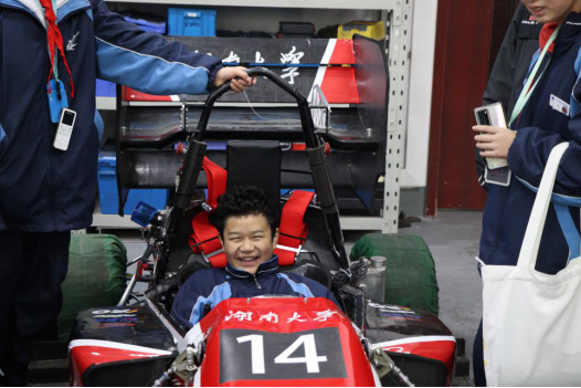 15时30分,同学们来到车队工作室进行参观。王栋、蒋瑞杰等多位赛车队队员先后对电车、无人车和油车赛车的设计与制造进行了详细的互动讲解,同学们提出的问题都得到了队员们的耐心解答。讲解结束后,同学们进行了自由参观,很多小同学在获得批准后坐上赛车进行体验,并合影留念。