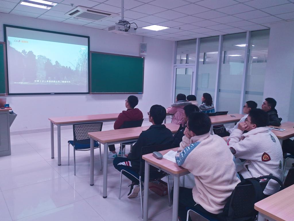 其次,九班同学们观看了倡导节约粮食的视频。视频展示了节约与浪费的鲜明对比,让同学们也明白了节约的重要性。学生代表吕正航也发表了深刻感想:节约是一种智慧,节约是一种美德,节约是一种习惯。我们是靠着吃粮食长大的,靠着水电运作生活的,这些能源给我们生活的动力,我们有什么理由去浪费挥霍它们呢?浪费粮食就是浪费生命,浪费资源就是走向犯罪,节约才是我们的好伙伴亲兄弟,在视频中我看到了节约下的美好的绿色生活,也感受到了浪费的严重后果,我们是新时代的青年,更应做好榜样,发扬节约的品质,宣传节约的力量!