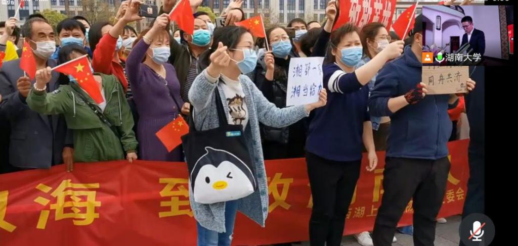 会上,主持人介绍了几位校友在疫情期间奋战于各行各业最前线的英姿,用一个个故事打动了在场的各位师生。一位从事记者行业的校友在疫情期间不惧被病毒感染的风险,深入病房,深入患者,深入医疗人员之中,以镜头记录下抗疫众生相。他看到有老人难以忍受隔离带来的孤独,像孩子一样让护士陪他聊天,他看到有医护人员脱下厚重的防护服后,才惊觉衣物早已被汗水打湿。他以独特的视角记录下了疫情下的无助与希望,病房里的痛苦与奉献。固然,他也畏惧病毒,担心家人朋友,但正是他那种职业精神与家国情怀所包含的大无畏,为全民抗疫这段难以忘怀的艰难历史的记录作出了不可磨灭的贡献。另一位负责火神山项目建设的校友在那段艰苦时光中,时时刻刻与同事们战斗在基建第一线。由于恰逢春节,当时留在武汉的工友不多,加紧建设任务便越发刻苦,以至于一旦有人需要帮忙,其他许多工友——即使刚刚坐下休息——也会起身相助。作为统筹规划的负责人,这位校友为了保障工程在武汉多雨的情况下顺利完成,通过多种途径联系材料商,为工地搭建了大雨棚,大大加快了施工进度。他为工程加速贡献的每一分力,都为苦苦等待床位的患者们增加了一线生机。他与在工地上流汗的工人朋友们一样,是为抗疫有着伟大贡献的逆行者。校友们的感人故事不仅感染了在场的师生们,也让身处分会场的同学们感受到了岳麓子弟在国难面前的一片赤诚之心。 85po