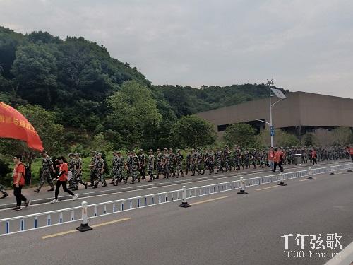 天马学生公寓出发,经牌楼路、潇湘中路、潇湘南路沿湘江至终点站李自健美术馆。沿途留下声声号子,铿锵有力;各营拉歌对唱,美妙动听。