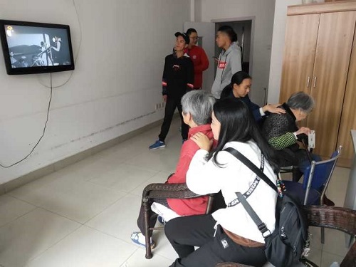 天马学生公寓门口集合,步行前往岳麓区安逸老年公寓。15:20分到达目的地。在进入公寓后,同学们三人一组以小组为单位进入了老人们的房间,陪老人聊天,给他们按摩,捶背。