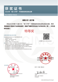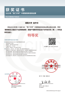 “仨带一对儿”(智能制造工程2301班赵齐文、胡子捷、曹登浩)获得智能产线数字孪生设计与开发方向特等奖,“我说的都对”(智能制造2402班朱佳莹)获得智能制造通识方向二等奖,“智造凌云组”(自动化2404班程章涛)获得智能制造通识方向二等奖,“湘机智创队”(智能制造2401班周胤宏、钟凯、吴雨莲)获得智能装备设计与数字孪生制造方向二等奖,“赛博突突突”(自动化2203班方礼稷、周子婷、罗腾彤)获得精益智造与协作机器人方向二等奖,指导老师由机械院朱克忆老师担任。