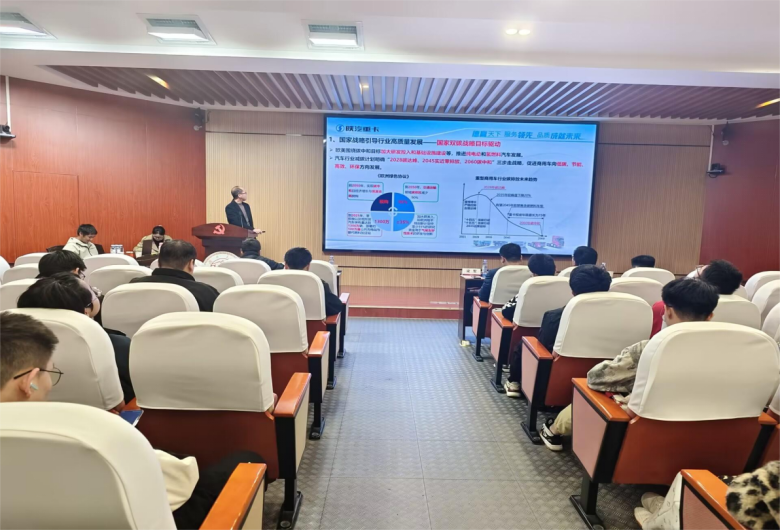 2000级校友,陕汽控股燃料电池牵引车整车总布置工程师、科技带头人安亚飞以“绿色低碳驱动下的未来重卡新技术研究”为主题,阐述了重型商用车行业所面临的机遇和挑战、重型商用车关键技术路径、未来重型商用车的实践与思考。丰富的讲座内容让同学们了解到该领域前沿研究动态,激发了大家对相关专业知识的渴求与热情。