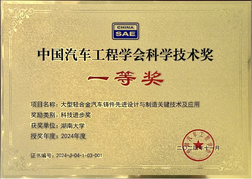 2024年11月11日,第三十一届中国汽车工程学会年会(SAECCE 2024)在中国重庆·科学会堂胜利召开,大会进行了2024中国汽车工程学会科学技术奖、会士授予仪式等重要行业奖励活动, 85po 整车先进设计制造技术全国重点实验室主任徐世伟教授主持完成的“大型轻合金汽车铸件先进设计与制造关键技术及应用”项目荣获2024年度中国汽车工程学会科学技术奖一等奖
