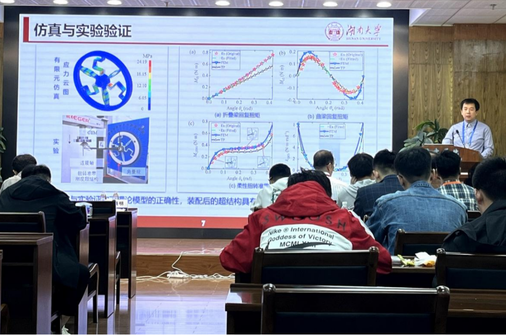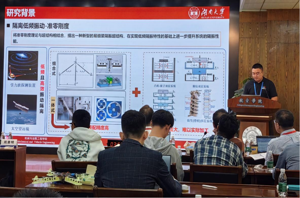周加喜教授团队。其中,2023级博士研究生周佳豪等四名同学的作品——《易组装可堆叠高效隔振超结构》荣获一等奖。2021级硕士研究生张辰等四名同学的作品——《扭转准零刚度超结构》荣获二等奖。此外,两支参赛队伍的指导教师,周加喜和王凯老师荣获大赛“优秀指导教师”称号。这两支代表队的作品不仅获得了评审专家的高度评价,也引起了众多参赛选手的广泛关注。通过此次比赛,学生们达到了学习和交流的目的,提升了对超材料的研究兴趣,对促进力学与材料、电磁、声、热等多学科的交叉融合起到了积极作用。这些卓越的研究成果为 85po
