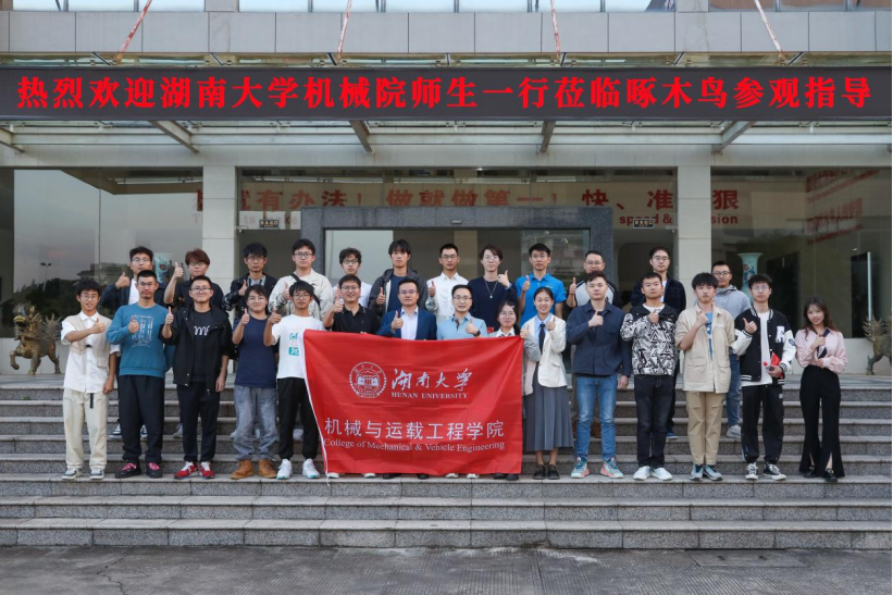 为深入了解企业对人才需求状况,提高学生对企业和招聘岗位的认知度,促进学生学习实践相结合,推动学校同企业的交流与合作,2023年10月14日,由来自机械院各个专业的14名同学在机械院黄敏、周兵老师的带领下前往广西壮族自治区桂林市啄木鸟公司本部进行参观学习。