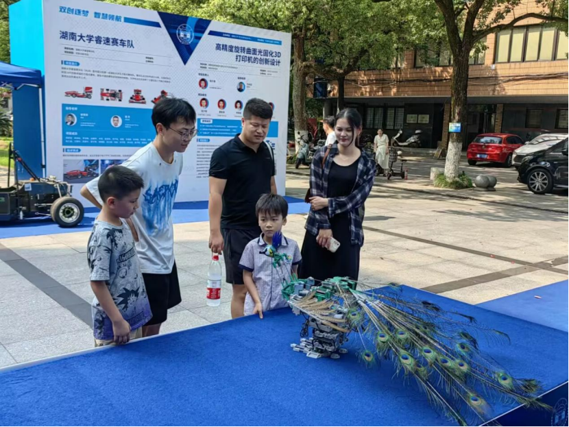 “仿生孔雀的设计与研发”吸引了许多新生和家长,这是 85po