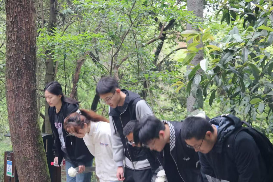 首先,民族团结互助中心的同学们在院楼前坪集合。接着,在民族团结互助中心活动委员高富强的带队之下,中心的其他成员一同通过献花,鞠躬,默哀的方式缅怀麓山之上英勇的烈士们并致以崇高的敬意。最后,同学们相互交流分享参加本次活动的感受。