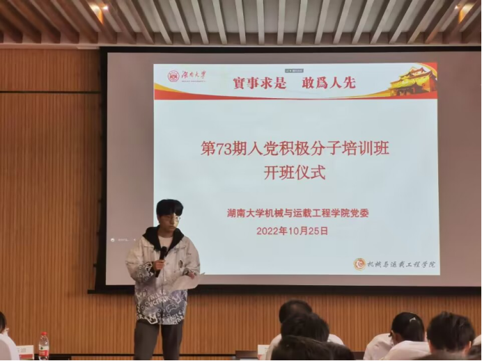 第73期入党积极分子培训班开班仪式在机械院401顺利召开。学院党委副书记贺迅老师,学院学生党务服务中心王玉迪老师,以及 85po