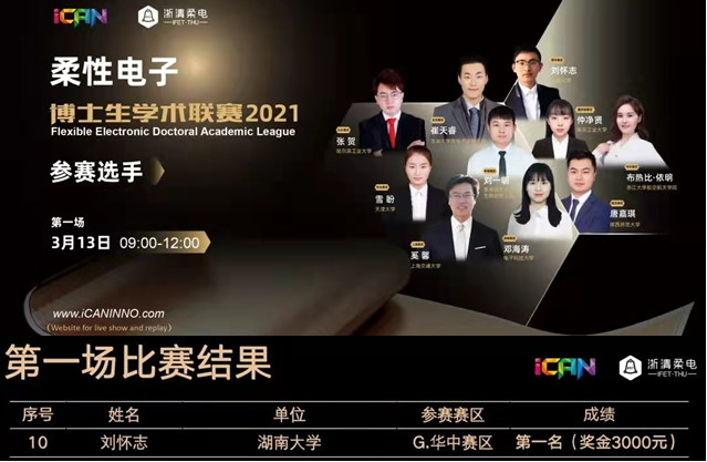 11月12日,由浙江清华柔性电子技术研究院联合艾瞰(iCAN International Contest of innovAtioN)举办的“2021年全国柔性电子博士生学术联赛总决赛”圆满落下帷幕,来自清华大学、北京大学、中科院等高校和科研院所的100名博士研究生参加了比赛。经过十大赛区的层层选拔,我院2018级博士研究生刘怀志成功入围华中科技大学黄永安老师领衔的华中赛区,并凭借其研究课题“柔性智慧微金属网格”在开赛阶段以优异表现荣获“单场冠军”,同时在总决赛舞台上凭借精彩发挥荣获“年度优秀奖”。该赛事由 85po
