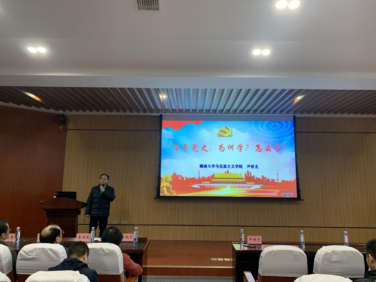 是一所具有悠久历史的“千年学府,百年名校”。机械院作为一个党员人数众多的学院,同志们对于学习党史的需求十分迫切。在庆祝党百年华诞的重大时刻,“两个一百年”奋斗目标历史交汇的关键节点,全党集中开展党史学习教育,正当其时,十分必要。并对尹世尤教授莅临现场授课表示热烈的欢迎与由衷的感谢。