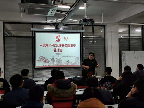 2019年12月12日中午,机械院研究生联合第三党支部在图书馆学习研讨空间开展了“不忘初心、牢记使命”专题组织生活会和民主评议会议。院党委副书记易洪波、学工办主任张骏老师、研究生辅导员黄倩雯老师出席了此次会议,另外参会的还有联三党支部的全体党员。
