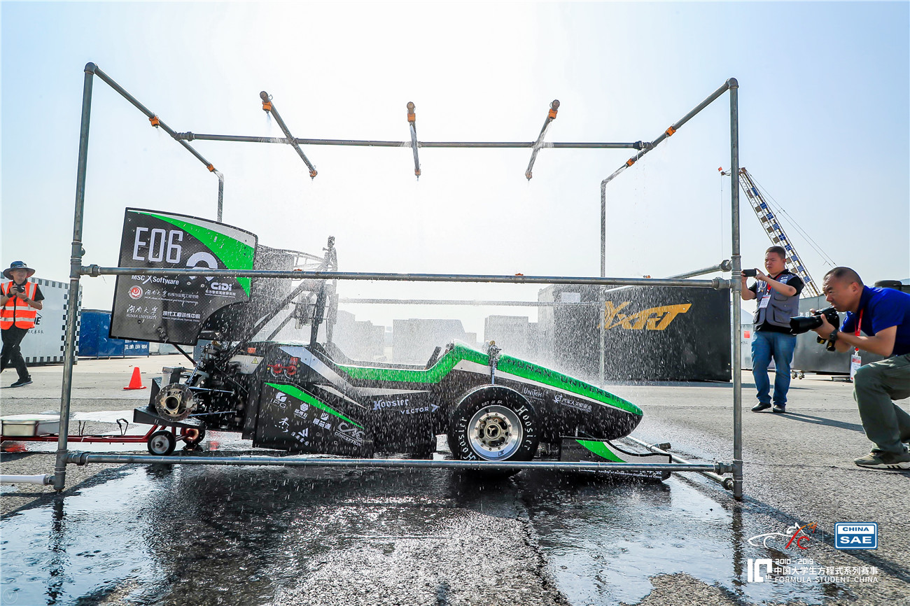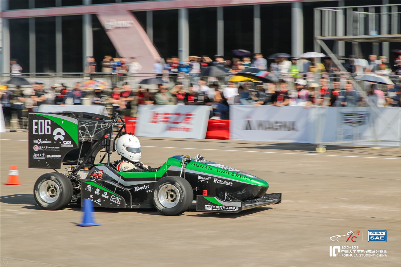 中国大学生方程式汽车大赛(Formula Student China,简称“FSC”)是一项汽车设计与制造比赛。各参赛车队按照赛事规则和赛车制造标准,在接近一年的时间内自行设计和制造出一辆加速、制动、操控性等方面具有优异表现的小型单人座休闲赛车并完成比赛。今年的比赛共有来自55个高校57支电动方程式赛车队、14支无人方程式赛车队参赛。比赛通过静态和动态两大类项目对造车的效果进行8个方面的综合评估,静态赛包括:设计答辩、成本与制造分析、营销报告,动态赛包括:8字绕环、直线加速、高速避障、耐久赛、效率测试。