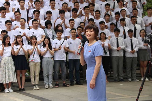 在15级辅导员王伟彬的主持下,典礼正式开始,活动第一项由彭书记致辞。在阵阵掌声中彭书记走上前致辞,向毕业生们表示热烈祝贺。她希望同学们能够以实际行动回报社会,脚踏实地,勿忘母校的培育之恩,有朝一日能够回到学校,为母校的建设提出意见和建议。她强调大家作为机械院的学生,要牢记机械院院训,常回家看看!