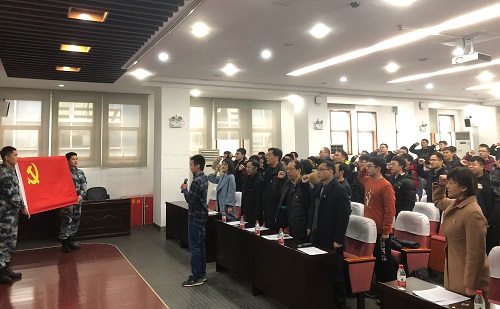 举行新发展党员入党宣誓仪式,学院党委书记彭晓燕、执行院长姜潮、党委副书记易洪波、副院长张屹、党委委员白中浩以及各年级负责党建的老师参会。