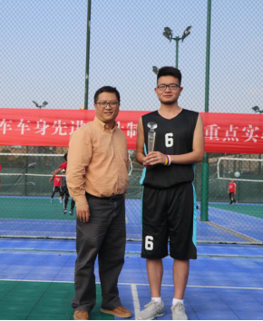 “汽车车身先进设计制造国家重点实验室2018年研究生篮球联赛”决赛最终落下帷幕,实验室邓久华副主任为冠军队伍颁发奖杯,学院刘坚副院长为亚军队伍颁发奖杯。今日没有成败,你我都是勇士。