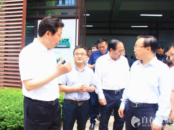(2017年,时任湖南省副省长向力力(右一)在株洲市委书记毛腾飞(右四),株洲市委副书记、市长阳卫国(右二)的陪同下视察公司,朱浩(右三)陪同介绍公司发展状况。)