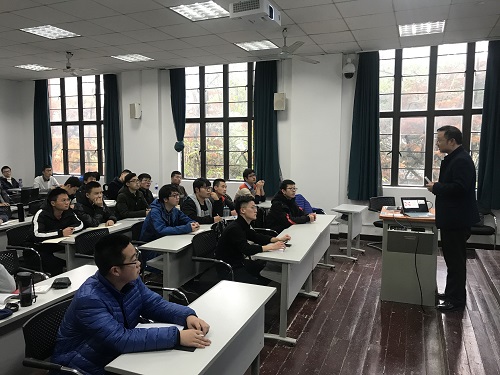 副院长张屹在中楼303教室给学院党员、入党积极分子讲党课,引导同学们积极学习党的有关理论知识,在学习、工作和生活中端正态度、踏实奋斗。