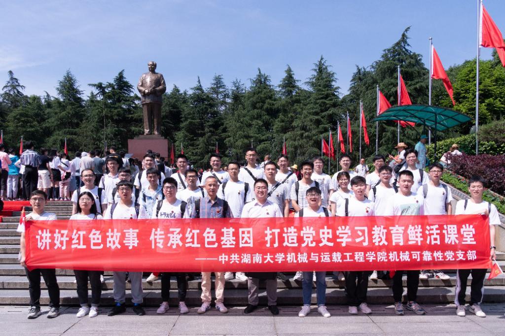 机械可靠性党支部、创新创业教育中心党支部、本科生车辆第一党支部联合组织优秀学生代表赴韶山、宁乡开展“讲好红色故事,传承红色基因,打造党史学习教育鲜活课堂”实地研学活动,教育引导学生党员学党史、悟思想、办实事、开新局。